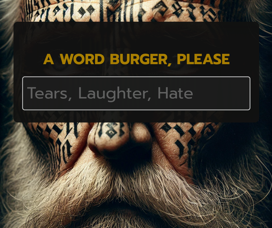 Then one night I watched the movie Furiosa and was tickled by a scene where the local tribal leader asks for his “History Man” for a “word burger.” I needed more of them so I built a website to do it. My first self-hosted, publicly available project.